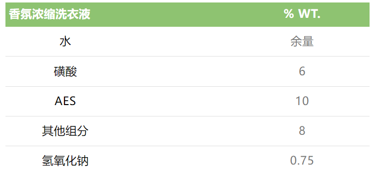 該高濃縮配方極具性價比,三倍濃縮高效洗衣,持久留香,也符合綠色消費方向。EP-2308的加入提升整體的清潔去污力,讓配方擁有更好的流動性和溶解速度。